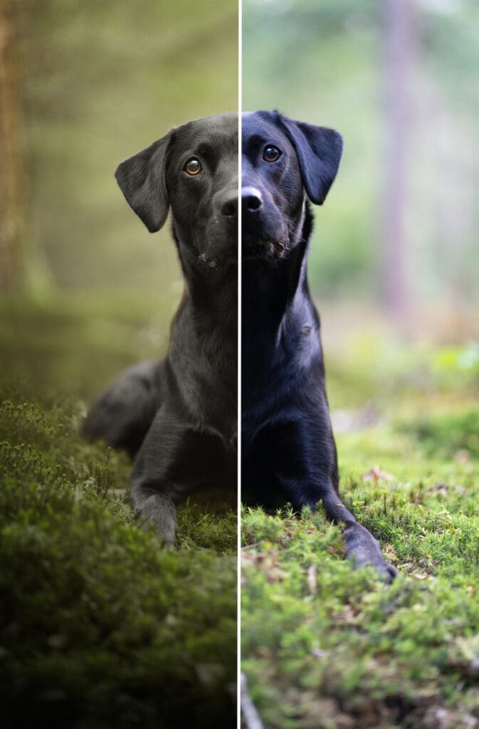 Fotobewerking is soms nog wel een uitdaging, want hoe krijg je nou de kleuren zoals je in je hoofd hebt. Zoals de camera een dier vastlegt, dat is niet altijd hoe de werkelijkheid is. Afhankelijk van hoe de witbalans is ingesteld op je camera, kan het zijn dat een hond ineens een andere kleur is. Heb je je witbalans op Bewolkt staan, dan gaat het meestal wel goed. Zelf heb ik mijn witbalans op Automatisch, waardoor mijn kleuren koeler worden. Wat krijg je dan? Een blauwe hond. Ik kom ze vaak tegen op Instagram, blauwe honden. Maar voor zover ik weet bestaan er helemaal geen blauwe honden 😉 In dit blog neem ik je mee in het bewerken van een zwarte hond in Lightroom en Photoshop.