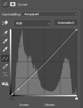 Nog een laatste stap en dan zijn we alweer klaar. Open Curven en haal de curven iets omlaag. Nu wordt de hond minder grijs. Nu is de hond weer zwart en kan je je focussen op de rest van de bewerking. Succes!
